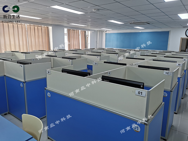 校用英语听力考试升降屏风电脑桌是现在教学培训考试的重要组成部分,由智能升降系统跟传统电脑桌相结合而设计的一款学生教学及考试专用桌。